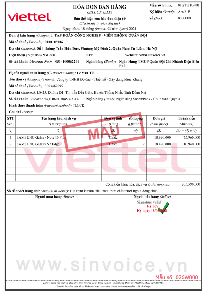 Việc sở hữu một mẫu hóa đơn điện tử đẹp sẽ tạo được ấn tượng đối với khách hàng/người mua hàng. Viettel xin giới thiệu đến quý khách hàng hơn 100 mẫu hóa đơn điện tử đẹp được thiết kế phù hợp với yêu cầu về hóa đơn điện tử của Bộ Tài chính.